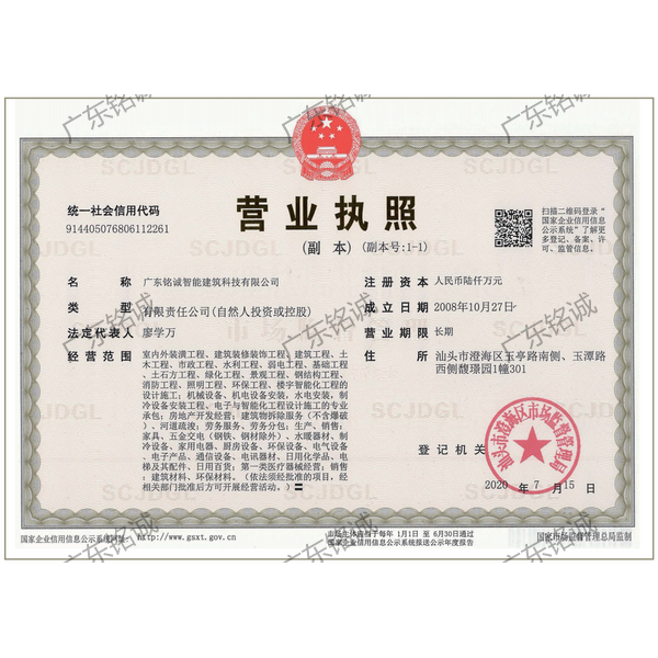 廣東銘誠智能建筑科技有限公司成立于2008年,公司注冊(cè)資金為6000萬元,集辦公裝修、酒店裝修、家庭裝修、軟裝裝飾、娛樂場(chǎng)所裝修為一體的裝飾公司,率先提出“創(chuàng)造現(xiàn)代人文空間,挑戰(zhàn)業(yè)界高峰”的雄壯口號(hào),并以此為目標(biāo),完成了一大批具有影響力的大型公裝工程:其中包括廣州國際中醫(yī)藥展貿(mào)中心、奧飛澄海音樂廳、澄海區(qū)國家稅務(wù)局、澄海興信小額貸款、澄海潮商村鎮(zhèn)銀行、汕頭龍湖賓館、澄海豪庭大酒店、御園國際飲食城、澄海福晉軒酒家、享樂匯保健有限公司、假日商務(wù)酒店、尚景康園物業(yè)、星輝車模股份有限公司、奧飛動(dòng)漫有限公司、香港國際玩具、汕頭萬基貿(mào)易有限公司、泰興源實(shí)業(yè)有限公司、汕頭皇冠玩具有限公司等;家裝工程包括南澳黃金海岸整幢的精裝房、中信華府、富春華庭、金信鳳凰名城、凱旋花園、中信金城、柏嘉半島、陽光海岸、金葉島等高等住宅。 ? 廣東銘誠智能建筑科技有限公司經(jīng)過十余年的建筑裝飾裝修施工領(lǐng)域項(xiàng)目積淀,于2018年2月取得“建筑裝修裝飾工程專業(yè)承包二級(jí)”、“建筑機(jī)電安裝工程專業(yè)承包三級(jí)”、“建筑工程施工總承包三級(jí)”、“施工勞務(wù)不分等級(jí)”、“安全生產(chǎn)許可證”等專業(yè)資質(zhì),并于2021年8月建筑裝修資質(zhì)正式升級(jí)為“建筑裝修裝飾工程專業(yè)承包一級(jí)”。這是對(duì)企業(yè)規(guī)模、工程業(yè)績、管理水平、誠信表現(xiàn)的肯定,是企業(yè)實(shí)力與能力的展現(xiàn)。 ? 公司每一項(xiàng)工程都始終堅(jiān)持“精美設(shè)計(jì)、精心施工、確保合同承諾;勤奮開拓、追求突出、創(chuàng)造時(shí)代精品”的質(zhì)量方針,力爭做一項(xiàng)工程,樹一座豐碑。 ? ?銘誠擁有一支由專業(yè)的營銷精英和客戶顧問組成的營銷隊(duì)伍,勤奮、敬業(yè)的每一位銘誠員工將本著“贏在別人休息時(shí)”的專業(yè)精神,為客戶提供全程營銷及售后服務(wù),確保客戶的合法利益,提供體貼周到的服務(wù),做到讓顧客滿意。 ? 銘誠擁有一批資老牌室內(nèi)環(huán)境設(shè)計(jì)師,以“現(xiàn)代人文空間”為設(shè)計(jì)理念,為客戶提供人性化、差異化、智能化的室內(nèi)環(huán)境設(shè)計(jì)服務(wù),準(zhǔn)確的將人性化特點(diǎn)與室內(nèi)環(huán)境相融合,達(dá)到了“現(xiàn)代人文空間”的和諧統(tǒng)一。 ? ? ? ?自主創(chuàng)新、視社會(huì)責(zé)任為己任的精神使我們?cè)诎l(fā)展的道路上屢獲殊榮:不斷提升的銘誠品牌知名度和美譽(yù)度,靠的是優(yōu)質(zhì)的產(chǎn)品,靠的是不斷提升的營業(yè)績,靠的是國內(nèi)的核心技術(shù)和誠信的服務(wù)。相信通過銘誠人的努力,銘誠將會(huì)不斷以新的姿態(tài)為提升廣大消費(fèi)者的生活質(zhì)量做好服務(wù),為中國裝飾行業(yè)設(shè)計(jì)創(chuàng)新做出突出貢獻(xiàn)。 ? ? “忘掉競爭、共